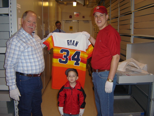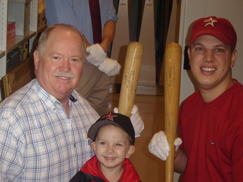 Many people have asked what I received for donating the baseballs. I never asked for anything, I just thought the HOF was their rightful place for the baseballs. The Astros brought us out to a team workout during last year’s NLCS. We met Roger Clemens and he signed my jersey and Tyler’s jersey and cap. The Astros gave us tickets to Game 3 vs. the Cardinals and autographed clubhouse jerseys from Lance Berkman and Chris Burke. Much thanks to Todd Fedewa for the great experience.